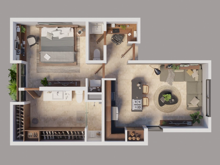• 1 recámara con área de tocador, baño completo y clóset vestidor