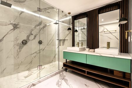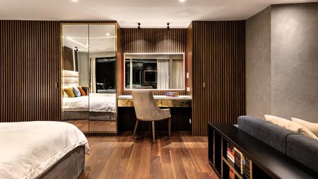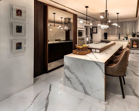 Cada detalle del departamento refleja calidad: madera de nogal, piedra tecnológica, mármol, diseños de iluminación, dimmers y detalles en latón que elevan cada espacio.