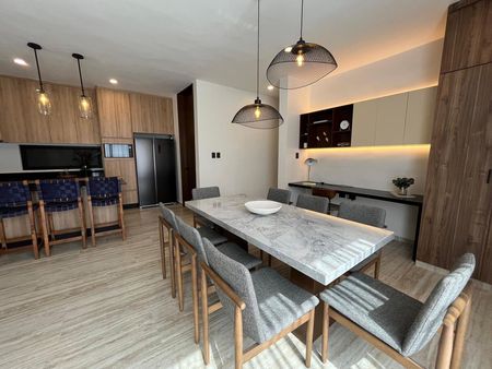 SE ENTREGA CON: Carpintería y Meseta de Granito en Cocina, Parrilla de Inducción de 2 Quemadores, Campana, Calentador Eléctrico, Carpintería en Baños y Closets, Fijo de Cristal Templado y Espejo en Baños, Apagadores Inteligentes, Cerradura Digital.