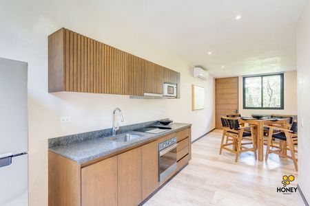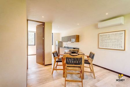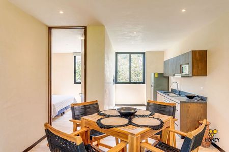 ¡Deje que este desarrollo único y exótico deleite sus sentidos en todo momento! - Dentro de la tranquila zona residencial llamada Aldea Zamá entre la playa y el pueblo - Ideal para una escapada romántica y tranquila en el paraíso mezclado con elementos de la naturaleza - Un lugar imborrable con una hermosa piscina, jacuzzi, solárium, área de bar al aire libre y lounge - Una gran terraza en la azotea con más lugares para comer/descansar al aire libre y un moderno gimnasio - Muebles cálidos y cómodos, Wi-Fi, una cocina totalmente equipada y un lugar de estacionamiento El espacio Este condominio de 678 pies cuadrados|63 metros cuadrados está ubicado dentro de la exclusiva zona de Aldea Zama, a medio camino entre la hermosa playa de Tulum y su pintoresco pueblo, y cuenta con: - Una sala de estar cálida y abierta con una decoración minimalista y naturalmente relajante y un cómodo sofá para relajarse en los momentos de inactividad en casa. - Una mesa de comedor con capacidad para 4 personas para una cena formal en casa con buenas charlas y risas a la hora de comer. ¡Esto también funciona como un espacio de trabajo apto para portátiles! (¡si debes!) - ¡La cocina abierta es poderosa! Con todo lo necesario para preparar comidas saludables en casa. ¡Está equipado con refrigerador/congelador, horno, estufa, microondas, cafetera y tostadora! - 1 dormitorio espacioso y relajante con aire acondicionado y un baño moderno con una amplia ducha independiente para acomodar a 4 personas con comodidad como tal: DORMITORIO: 1 cama King con fantástico espacio de guardarropas, silla de lectura y caja de seguridad ÁREA DE ESTAR: 1 sofá cama Queen extraíble - Hay 1 PLAZA DE APARCAMIENTO GRATUITA a tu disposición si llegas en coche. Por favor, pregunte en recepción a su llegada dónde estará su espacio. - Las estancias de larga duración son bienvenidas. Puede ser un gran lugar para el trabajador remoto. Wi-Fi gratuito y espacio de trabajo apto para portátiles en la mesa de comedor. Este condominio se encuentra dentro de un encantador complejo estilo comunidad, rodeado de naturaleza y ofrece excelentes comodidades como una hermosa y amplia piscina, jacuzzi y terraza para tomar el sol con sillas y camastros, y un bar con servicio de bebidas junto a la piscina. Hay un gimnasio moderno con muchos equipos y pesas libres y una gran terraza en la azotea con tumbonas adicionales, mesas para cenar o trabajar al aire libre, ¡y mucho espacio para observar las estrellas o ver una puesta de sol en la jungla!