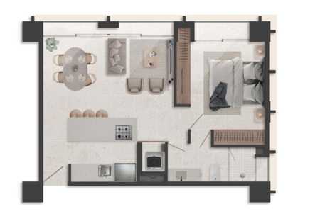Diseñado para maximizar cada metro cuadrado, este departamento ofrece funcionalidad y confort en un entorno moderno.