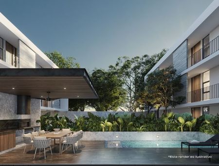 de este desarrollo de departamentos en Temozón Norte, Un diseño con espacios amplios e interiores bien