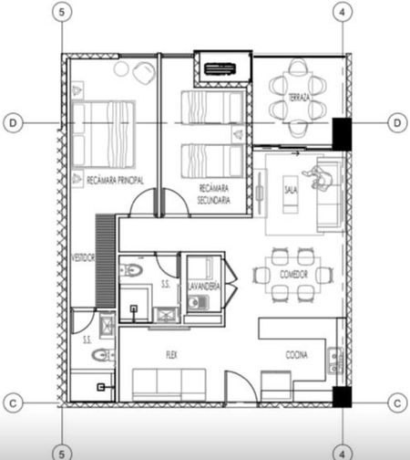 - Área flex (ideal para oficina, sala de TV o tercera recámara ligera)