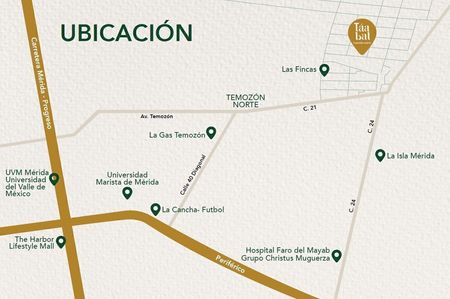 Con una ubicación privilegiada, al norte de la ciudad, estarás a menos de 15 minutos de la Universidad Marista, Modelo y Anáhuac Mayab, llegar a plazas como La Isla, The Harbor y Altabrisa así como el Hospital El Faro o StarMédica te tomará unos 20 minutos, además, se encuentra a unas cuadras del Periférico de Mérida con fácil acceso a desarrollos tanto comerciales como residenciales y a la Carretera a Progreso desde donde en menos de 25 minutos podrás estar disfrutando de las hermosas costas yucatecas, definitivamente la mejor elección para tu nuevo hogar.