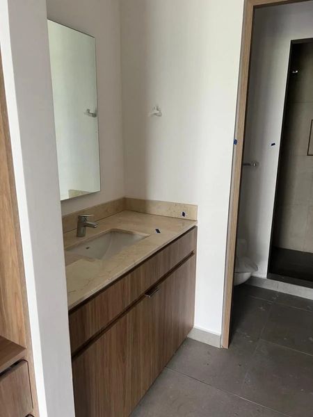 El departamento se entrega semi-amueblado, cuenta con persianas, comedor, sala, bases para camas y mini splits.