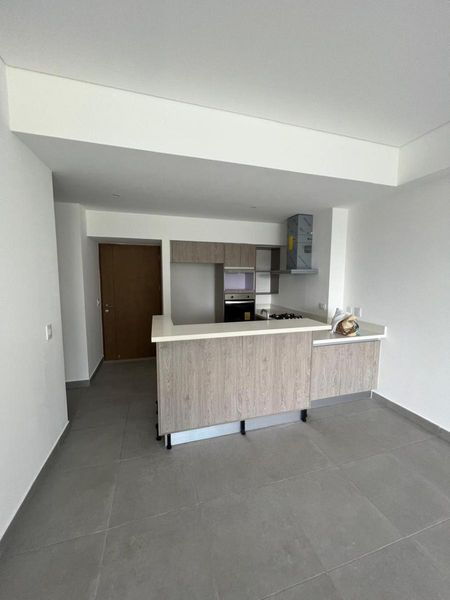 Sala-comedor, cocina integral equipada con barra de cuarzo blanco, horno, parrilla, tarja grande y campana; 2 recámaras (cada una con baño completo), la principal con Walking-closet, la secundaria con clóset, medio baño para visitas, balcón (10m2) con excelente vista hacia la alberca y jardines del desarrollo, clóset de lavandería, 2 estacionamientos techados y ducto para basura.