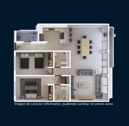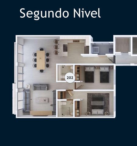 Comodidades: 2 recámaras (con opción a una tercera), 2 baños completos, cocina equipada, sala, comedor, cuarto de lavado y balcón.