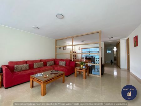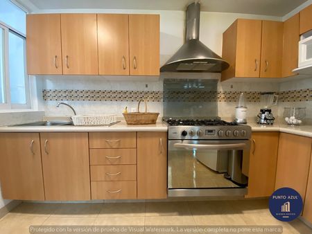 Pasillo vestibular, Sala, Comedor, cocina equipada, área de lavandería, cuarto de servicio con baño completo.