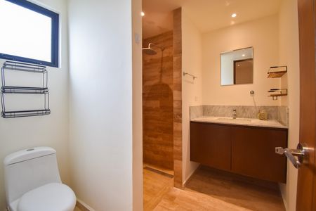 Recámara principal con clóset vestidor y baño completo.