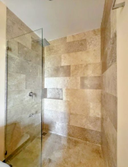 -Mesetas de granito en cocina y barra desayunadora, pisos de marmol, yeso en muros, muros divisiorios de block.