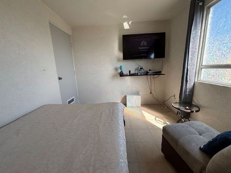 Si estas buscando un espacio para ti o tu Familia, y tu rutina diaria se encuentra muy cerca de la zona industrial de Toluca éste departamento es el ideal, ya que se encuentra dentro de un Fraccionamiento Privado con excelente comunicación a todos los servicios desde escuelas, panaderías, lavanderías, purificadoras y generosas áreas verdes para el entretenimiento y ejercicio físico con canchas de básquetbol y juegos infantiles.