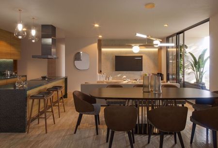 El complejo cuenta con más de 25 amenidades; entre ellos alberca, salón de yoga con vista al cielo, bar en las alturas, gimnasio al aire libre y tintorería.