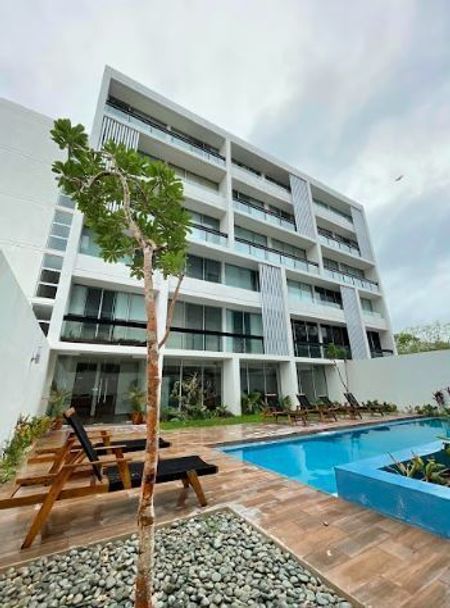 Es un Edificio de 72 Departamentos, distribuidos en dos torres gemelas que convergen en una zona de áreas comunes.