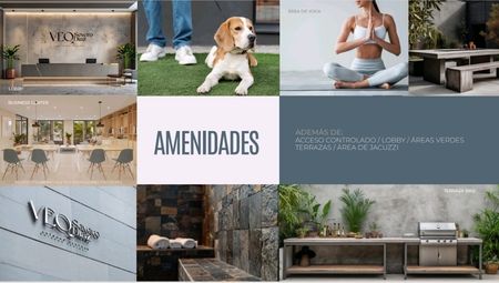 Amenidades como lobby, business center, terraza BBQ, area de yoga, area de jacuzzi, areas verdes, etc.