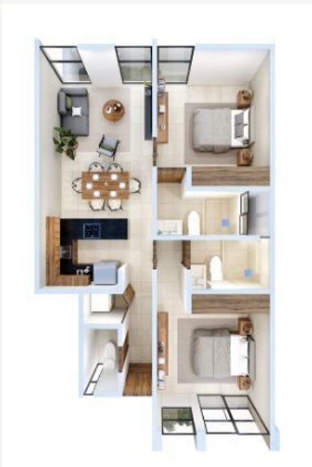 Baura esun complejo de 38 departamentos de 1, 2 y 3 recámaras, distribuidos en dos torres de 3 y 4 niveles, una torre contará con elevador en una torre y escaleras de acceso a todos los niveles.