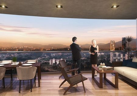 Six apartment types, starting at 416 m2 and $14,100,000 pesos, with 3 bedrooms, 3.5 bathrooms, and terraces with a panoramic view.