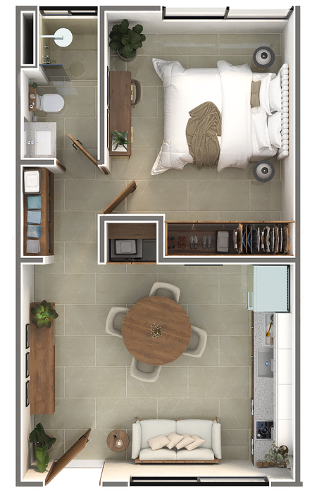 Modelo 1 Tipo | 1 Recamara | 42.5 m2