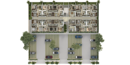 Nikóra consta de 2 torres de 4 niveles con 42 departamentos de 1 y 2 habitaciones.
