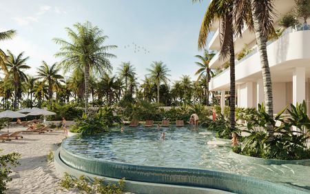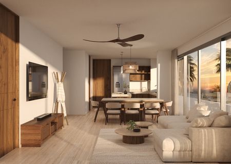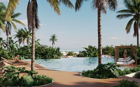 Exclusivo desarrollo inmobiliario frente al mar en el Km. 21 de la playa de San Benito, conformado por 74 departamentos de 2,3 y 4 recamaras, distribuidos en distintas topologías premium, integrados en un proyecto que respeta la vegetación local y se mimetiza con la costa.