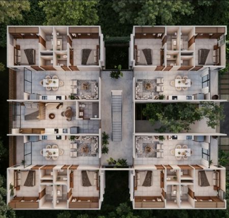 Son 15 unidades distribuidas en 3 niveles, 12 de 2 recámaras y 3 de 1 recámara.