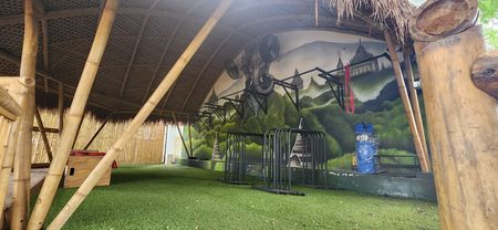 -Áreas verdes con abundante vegetación y árboles frondosos.