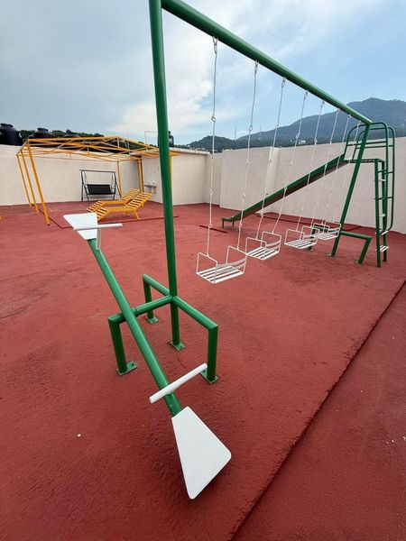- Roof garden con asador, mesas, sillas, camastros, juegos infantiles y baños, ¡tu espacio para relajarte y disfrutar con tus seres queridos!