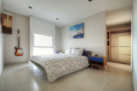 Un depa con gran espacio que cuenta con: sala-comedor, cocina, área de lavado, baño común, vestíbulo o recámara, recámara principal, vestidor y área de lavabo, baño en recamara principal, 2a recámara con clóset, sala T.V., balcón cubierto, escaleras internas (para subir a roof garden), medio Baño (en azotea), roof garden (una zona con pergolado y otra