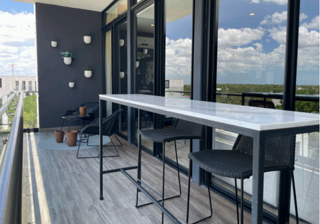 *Periquera en la terraza con cubierta de mármol Carrara y base de herrería.