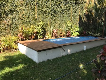 1 alberca de 30 m2. con azulejo veneciano, equipada completamente con equipo de filtrado y calefacción solar.