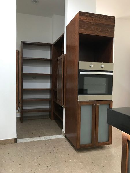 3 habitaciones con walking closet c/u (1 rec. principal) con ventanas de aluminio y mosquiteros + 2 baños completos con canceles de vidrio templado + cocina integral de madera de pino con cubierta y barra de granito “San Gabriel Negra”, equipada con parrilla de 6 quemadores con campana extractora, horno de gas empotrado, tarja doble + sala/comedor + terraza con amplio ventanal de aluminio con puertas corredizas y mosquiteros + jardin privado + cuarto de lavado con despensa + calentador de gas + video portero + conexiones para teléfono y tv., + tanque estacionario de 120 kl + cisterna privada de agua 12.250 litros.