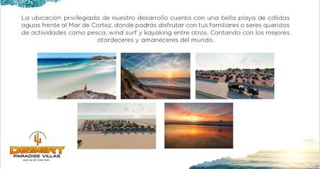 Desert Paradise Villas es un exclusivo proyecto creado para brindar a las familias y visitantes un espacio de relajación en la playa, con amenidades para la convivencia familiar y actividades al aire libre y de off-road. Materializando la visión de Don Fernando, el dueño original del predio, quien soñaba con un lugar donde su familia pudiera adquirir recuerdos y disfrutar de tiempo de calidad con todas las comodidades y amenidades como playa, club de playa y pista off-road.