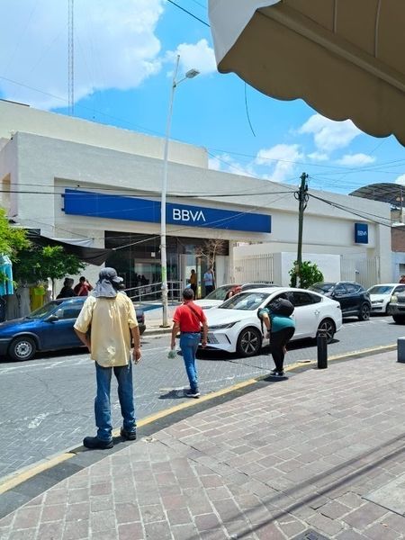 Entre los Bancos Bancomer y Banorte así como un estacionamiento publico a 50 metros.