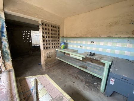 También un mostrador bastante amplio con cortina/ portón lo que puede ser un estacionamiento o un recibidor.