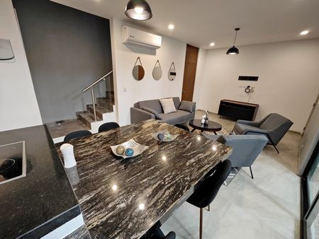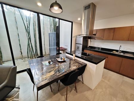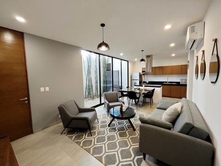Ponemos en renta townhouse dentro de privada con acceso controlado, se entrega amueblado y equipado, listo para habitarse, con dos recámaras cada una con vestidor y baño privado.