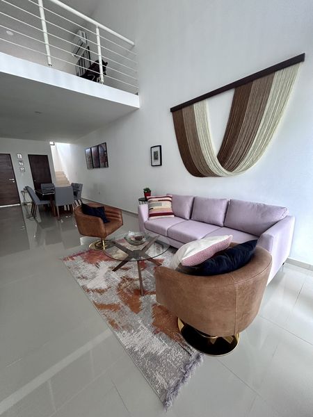 Esta casa completamente amueblada con diseño de interiores y una espectacular sala de doble altura que desde que entras piensas que está de ensueño, cada detalle por las pequeño que sea hace resaltar cada espacio dentro de ella.