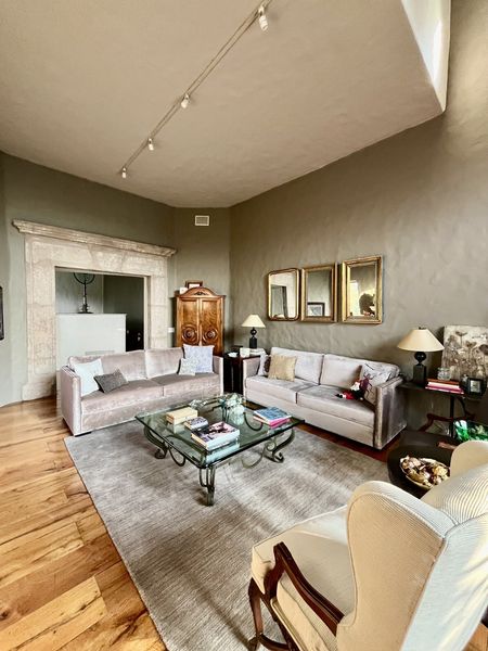-Family con gran amplitud y vista a un patio interior con fuente, iluminado naturalmente.