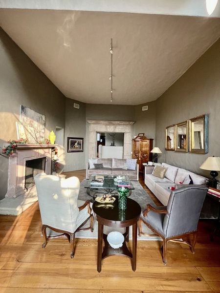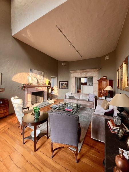 -El recibidor a doble altura con techos altos y vigas de madera, dónde se encuentra una recámara independiente con baño y gran amplitud.