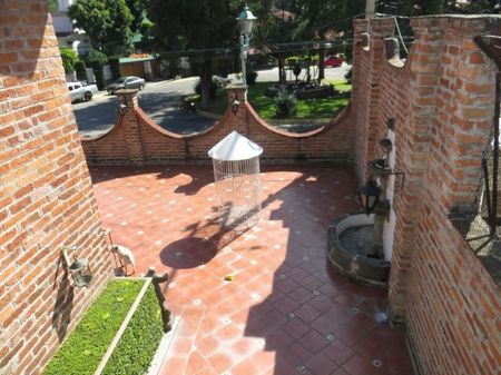 Una residencia colonial Español obedece a nuestras raíces muy nuestras. Cuenta con techos envigados altos, arcadas y espacios que se abren a los jardines con terrazas para disfrutar de las tardes con patios para organizar reuniones por la mañana con ventanas para abrir y contemplar su apacible y bello entorno, Frente al gran parque delos Naranjos escoltado por altos cipreses y sobria glorieta que vestibula su llegada.