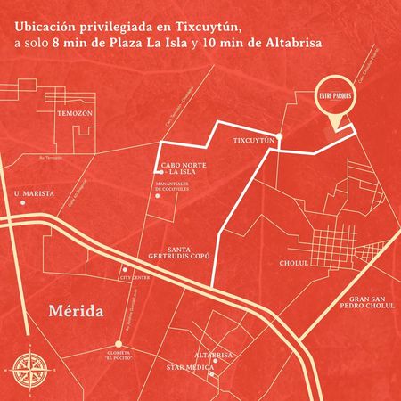 Ubicado en Tixcuytun, a pocos kms de plaza la Isla en Mérida, con acceso directo y rápido a la costa esmeralda de Yucatán.