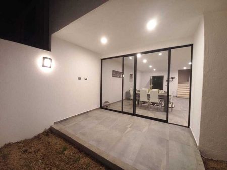 PB: Sala, comedor, cocina equipada con barra de granito, cuarto de lavado techado, cuarta recámara, baño completo, preciosa terraza techada, jardín, ALBERCA PRIVADA CON CALEFACCION SOLAR, 2 lugares de estacionamiento.