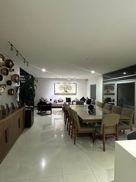 Disfruta de la vida en una exclusiva residencia amueblada, dentro de un tranquilo y seguro coto privado de solo 69 casas. El coto cuenta con un parque central, una terraza y un salón para eventos, ideales para reuniones familiares o eventos sociales. La casa tiene 340 m² de construcción en un terreno de 300 m², con una distribución amplia y moderna.