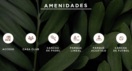 Amenidades, pórtico de acceso controlado 24/7, barda perimetral, casa club, cafetería, cocina, bodega, gimnasio, piscina, canal de nado, asoleaderos, baños, área de picnic, áreas verdes, andadores, cancha de padel, cancha de tenis, pista de jogging, área de juegos infantiles, cancha de futbol, parque acuático.