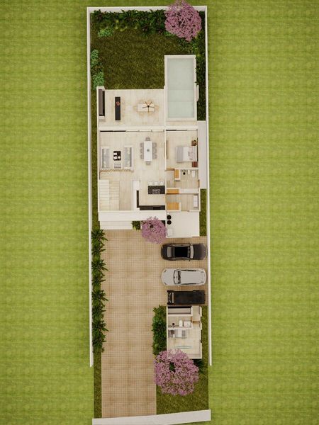 • Interior con firme de concreto con pisos de Porcelanato de 90x90