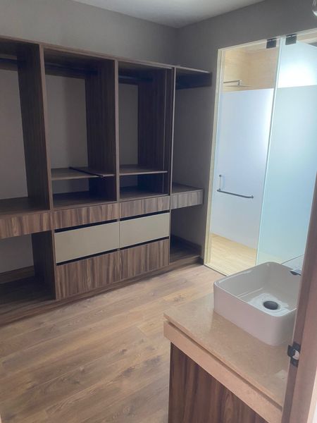 El departamento cuenta con sala comedor, cocina equipada y cuarto de lavado, 3 recamaras con closets, la principal con vestidor y baño completo, estudio, terraza y bodega.