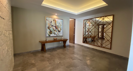 * Acceso ajardinado para Disfrutar de amplios espacios desde el recibidor , sala - comedor con ventanales hacia la piscina y jardín. Climatizado.