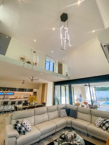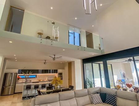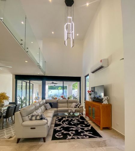 Amplia sala con techo a doble altura para una atmósfera elegante y luminosa