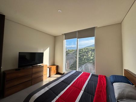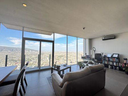 Al ser un departamento que va de lado a lado, también cuenta con vista sur–poniente y oriente, incluyendo la Sierra Madre como fondo. Metraje generoso y distribución impecable: