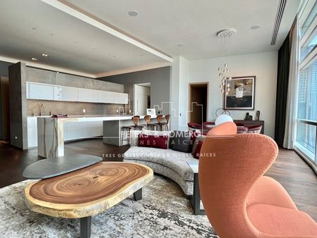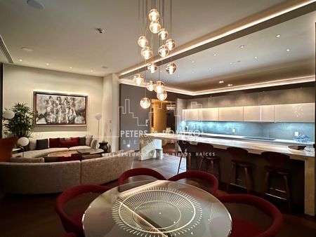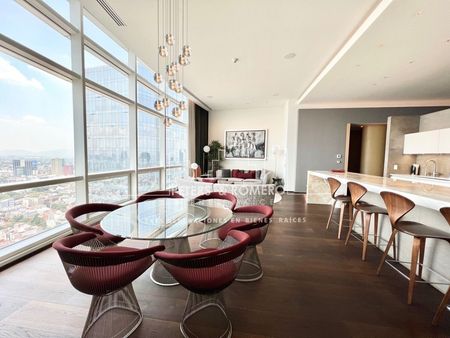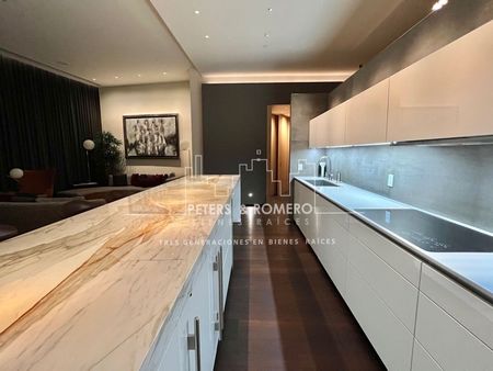 Diseñado desde cero con un renombrado arquitecto, el Penthouse cuenta con acabados del más alto lujo, techos de 4 metros, tres recamaras cada una con su baño, una home cinema, despacho, 4 lugares de estacionamiento y las mejores vistas de la Ciudad.