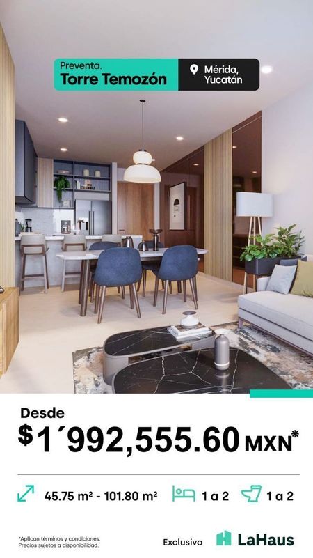 Departamentos en preventa, con servicio resort, se ubican en la av. Principal de Temozon norte , Justo en el corazón de alta plusvalía en la