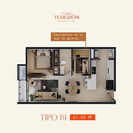 Incluye cajón de estacionamiento y amenidades como alberca, gym, área social, área de trabajo y juntas.